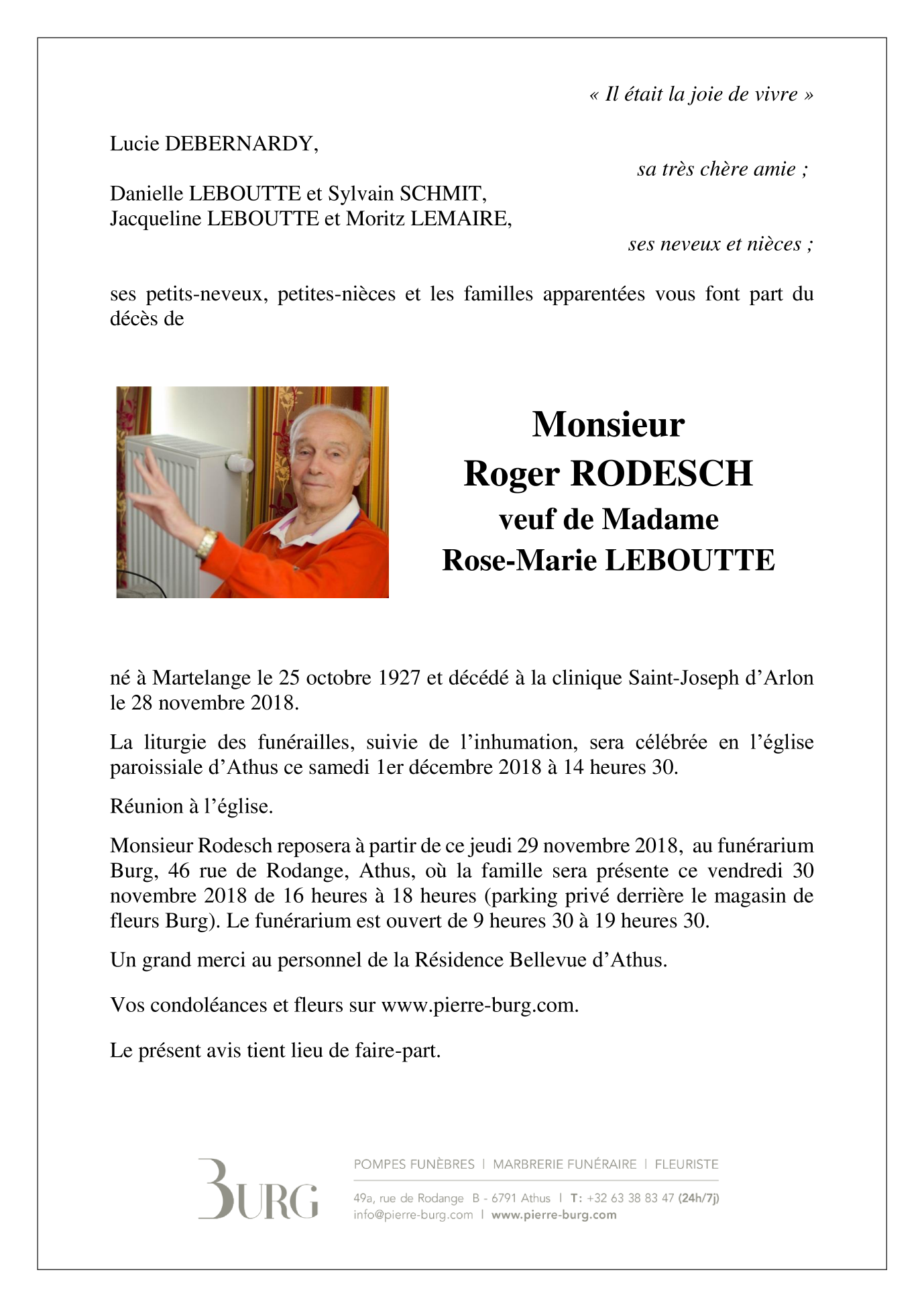 Décédé à Arlon (6700) le mercredi 28 novembre 2018 à l'âge de 91 ans
