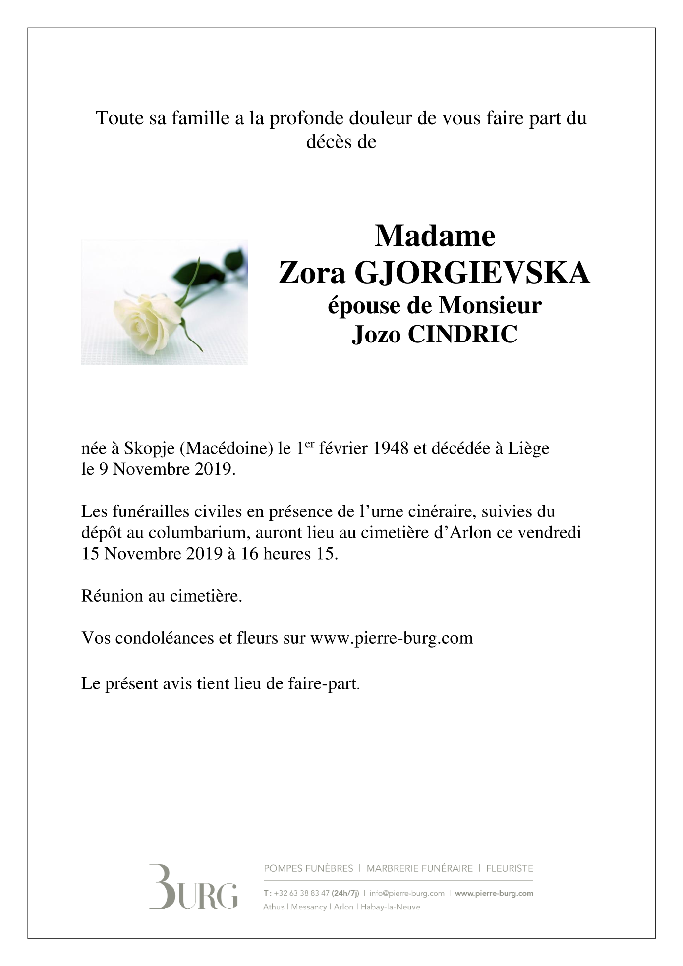 Décédée à Liège (4000) le samedi 9 novembre 2019 à l'âge de 71 ans