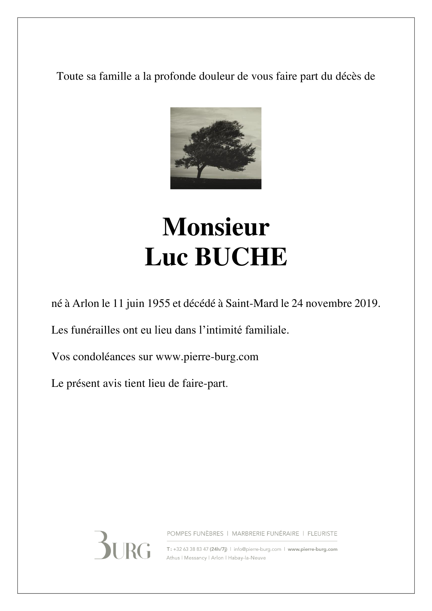 Décédé à Saint-Mard (6762) le dimanche 24 novembre 2019 à l'âge de 64 ans