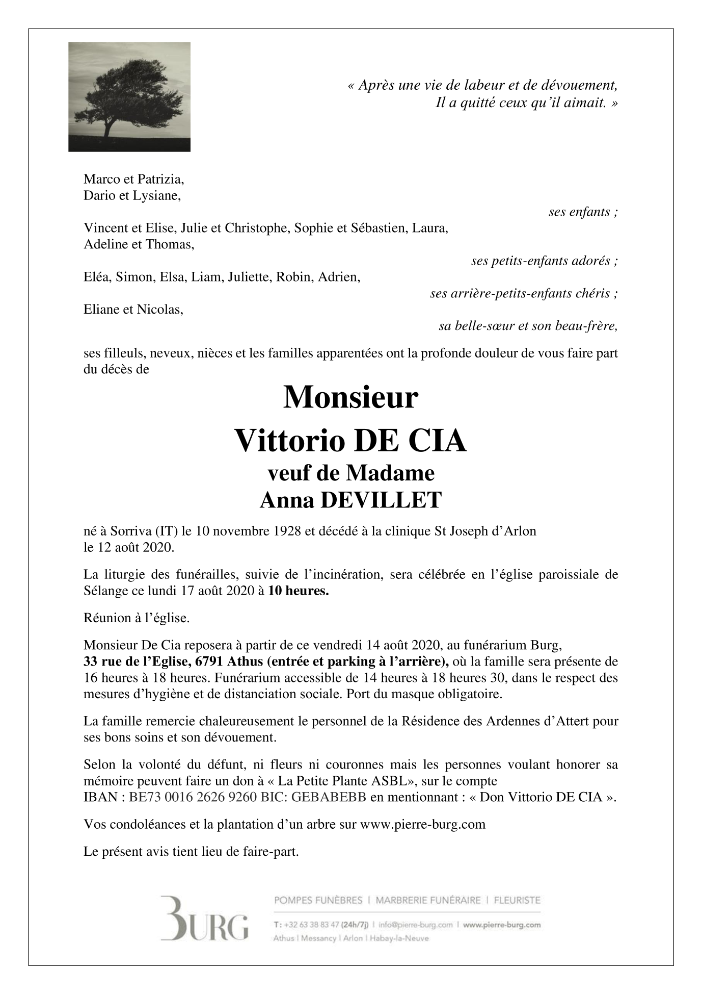 Décédé à Arlon (6700) le mercredi 12 août 2020 à l'âge de 91 ans