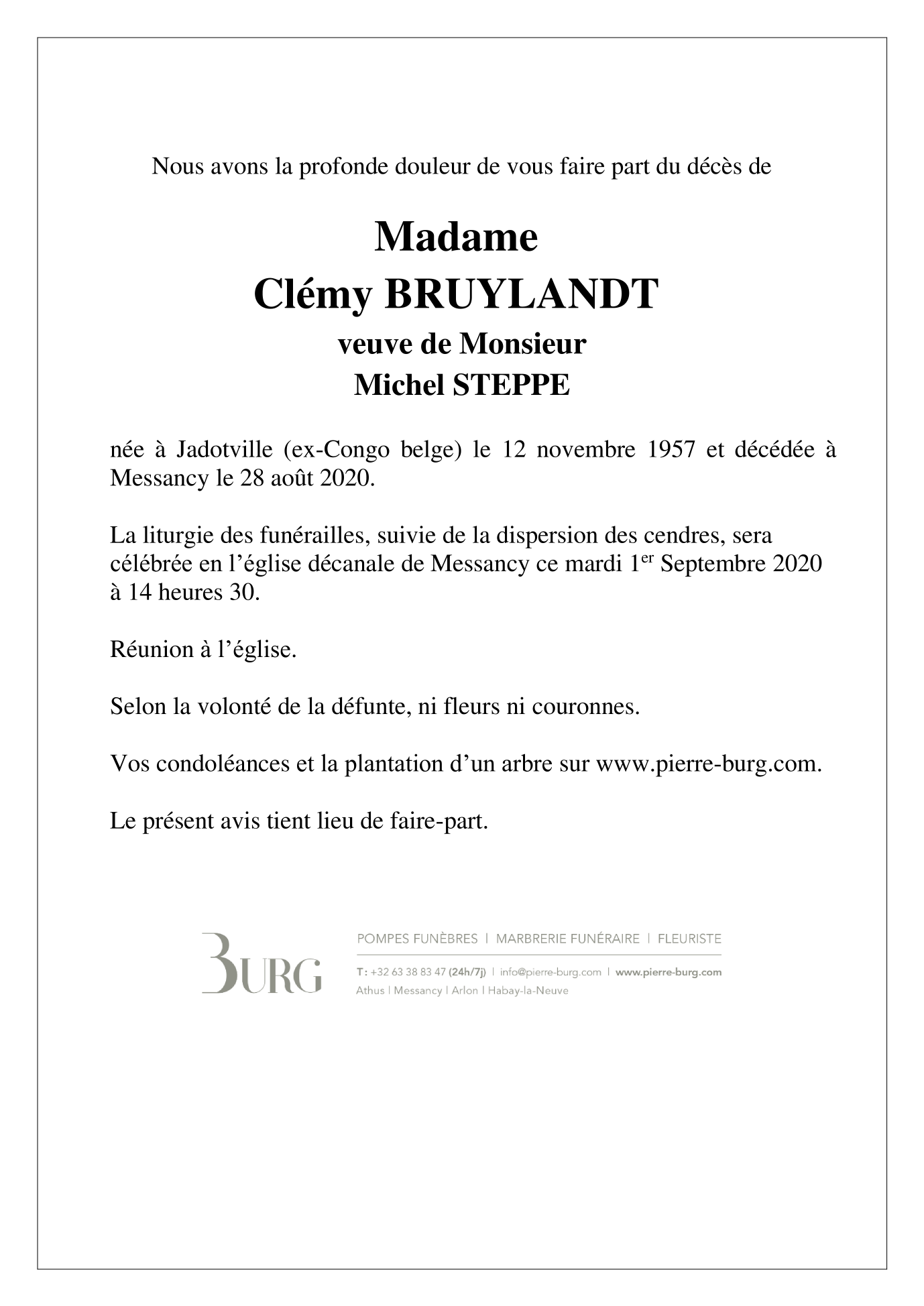 Décédée à Messancy (6780) le vendredi 28 août 2020 à l'âge de 62 ans