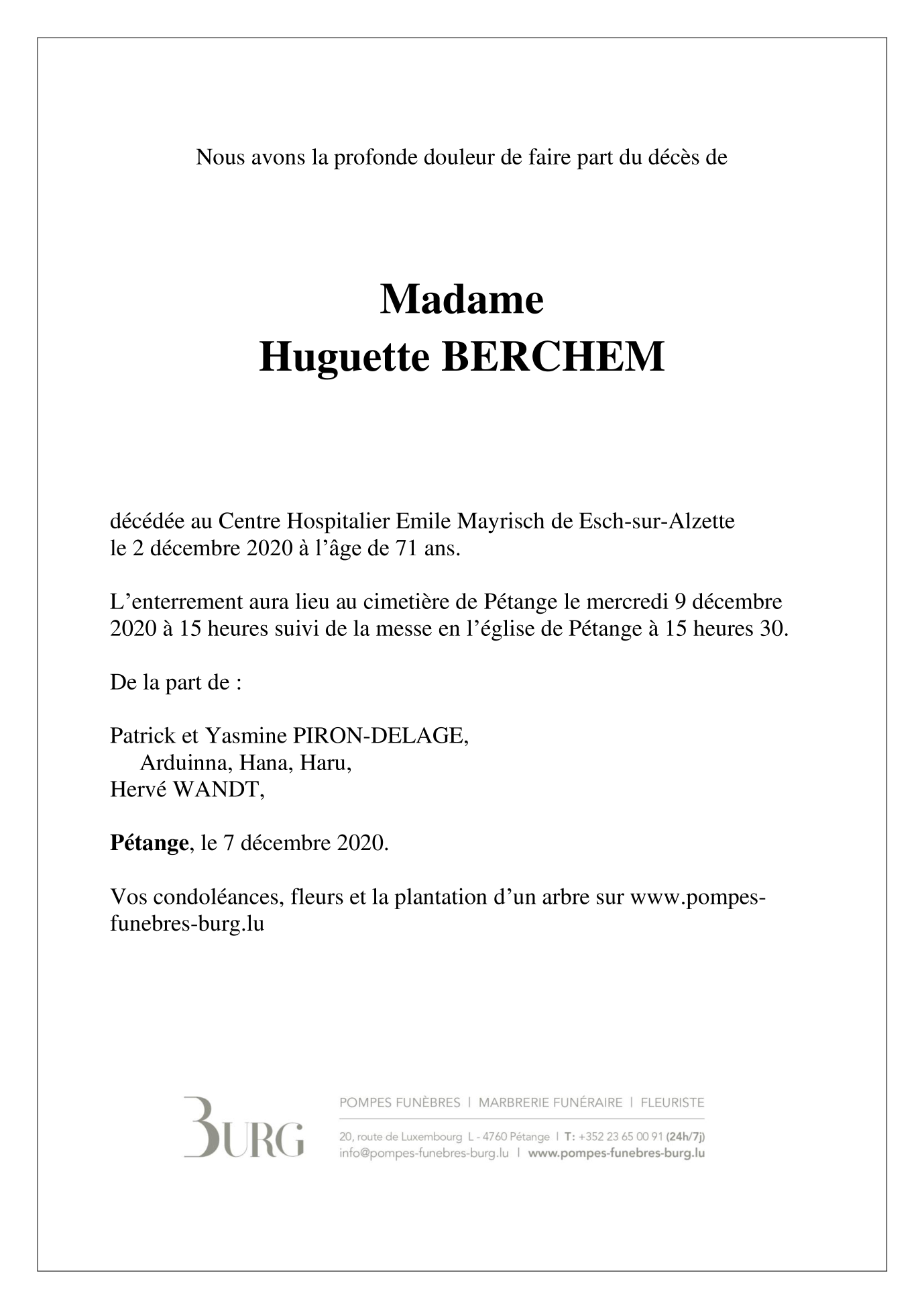 Décédée à Esch-Sur-Alzette/Mayrisch  (4240, Luxembourg) le mercredi 2 décembre 2020 à l'âge de 71 ans