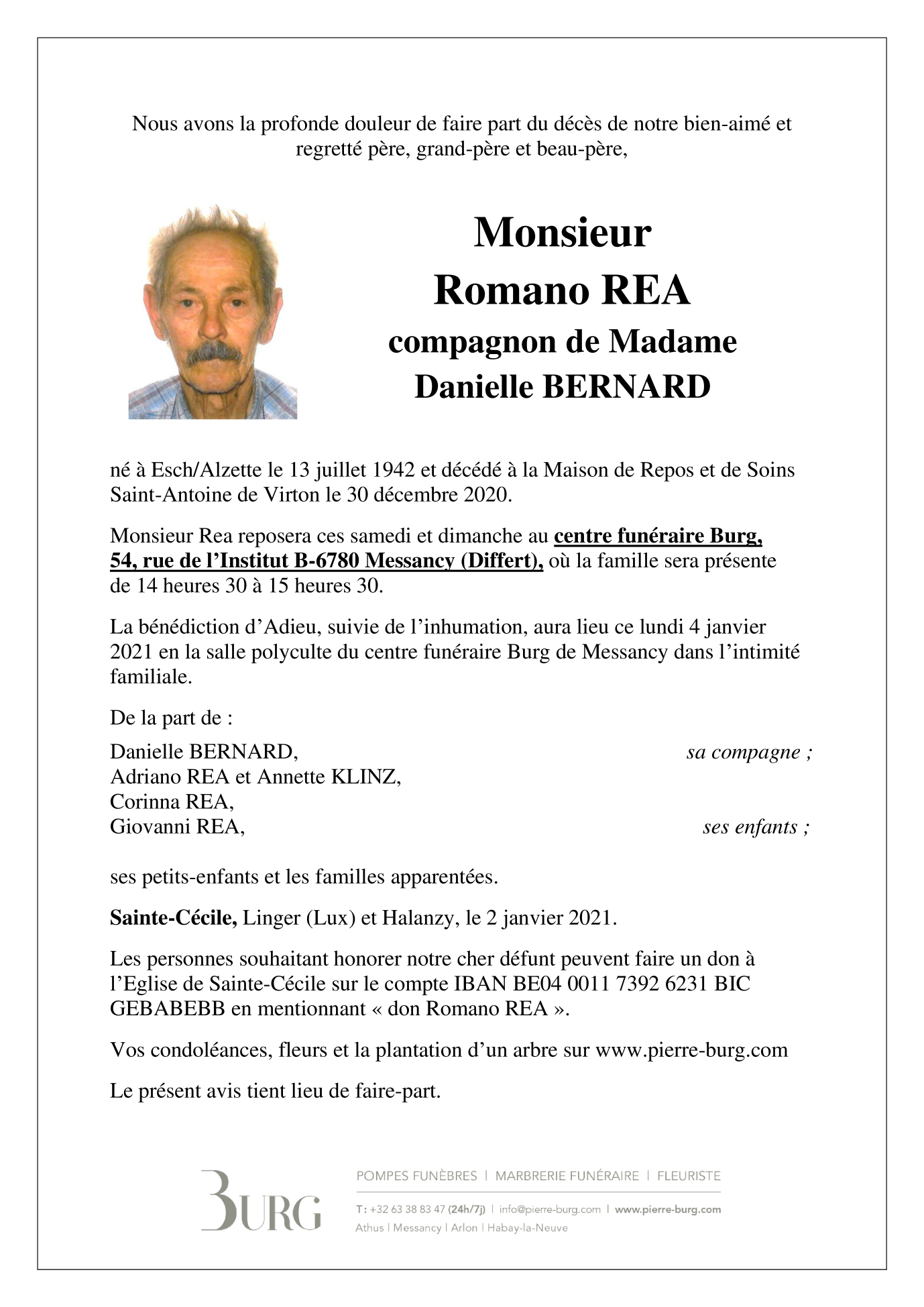 Décédé à Saint-Mard (6762) le mercredi 30 décembre 2020 à l'âge de 78 ans