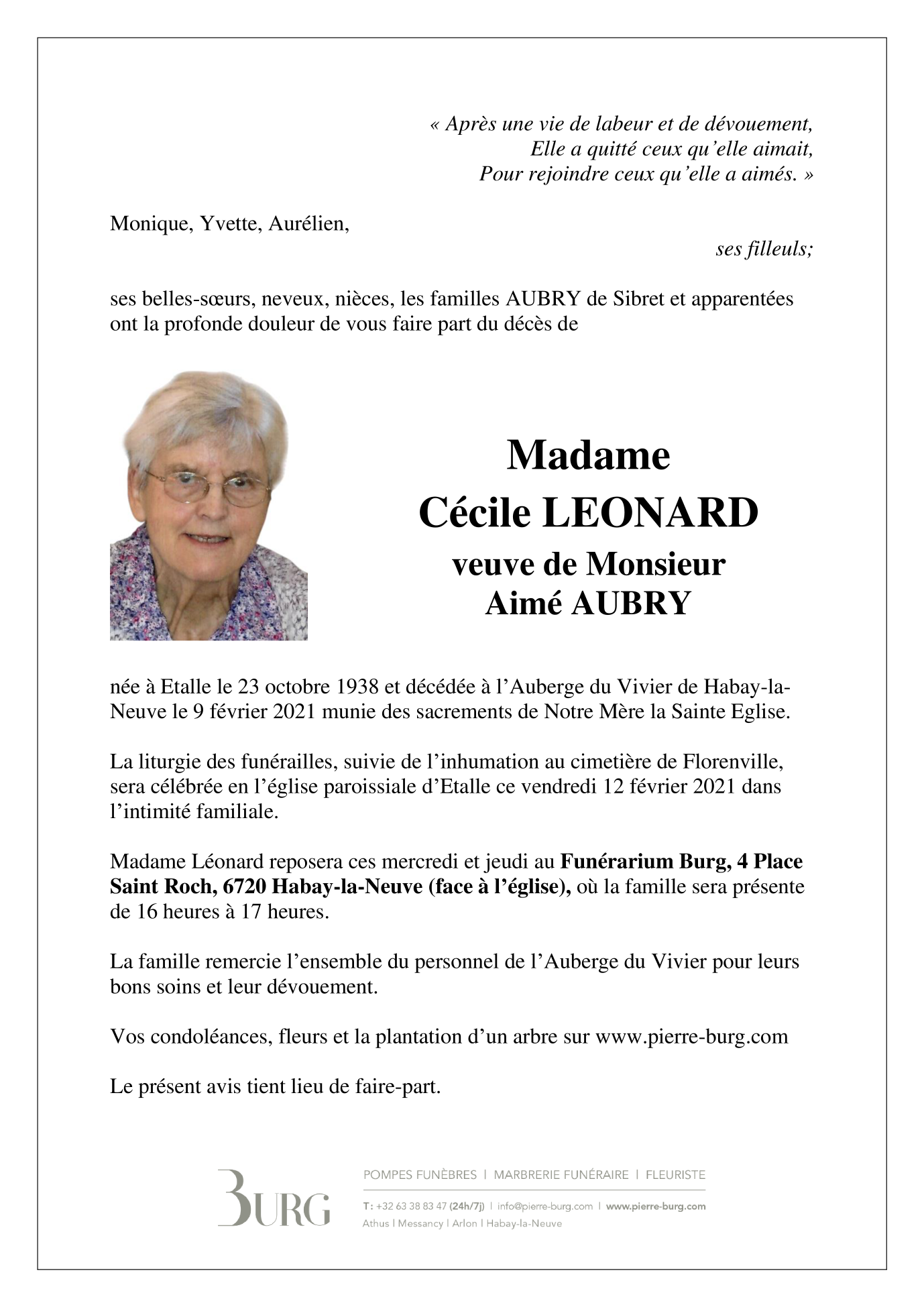 Veuve de Monsieur Aimé AUBRY