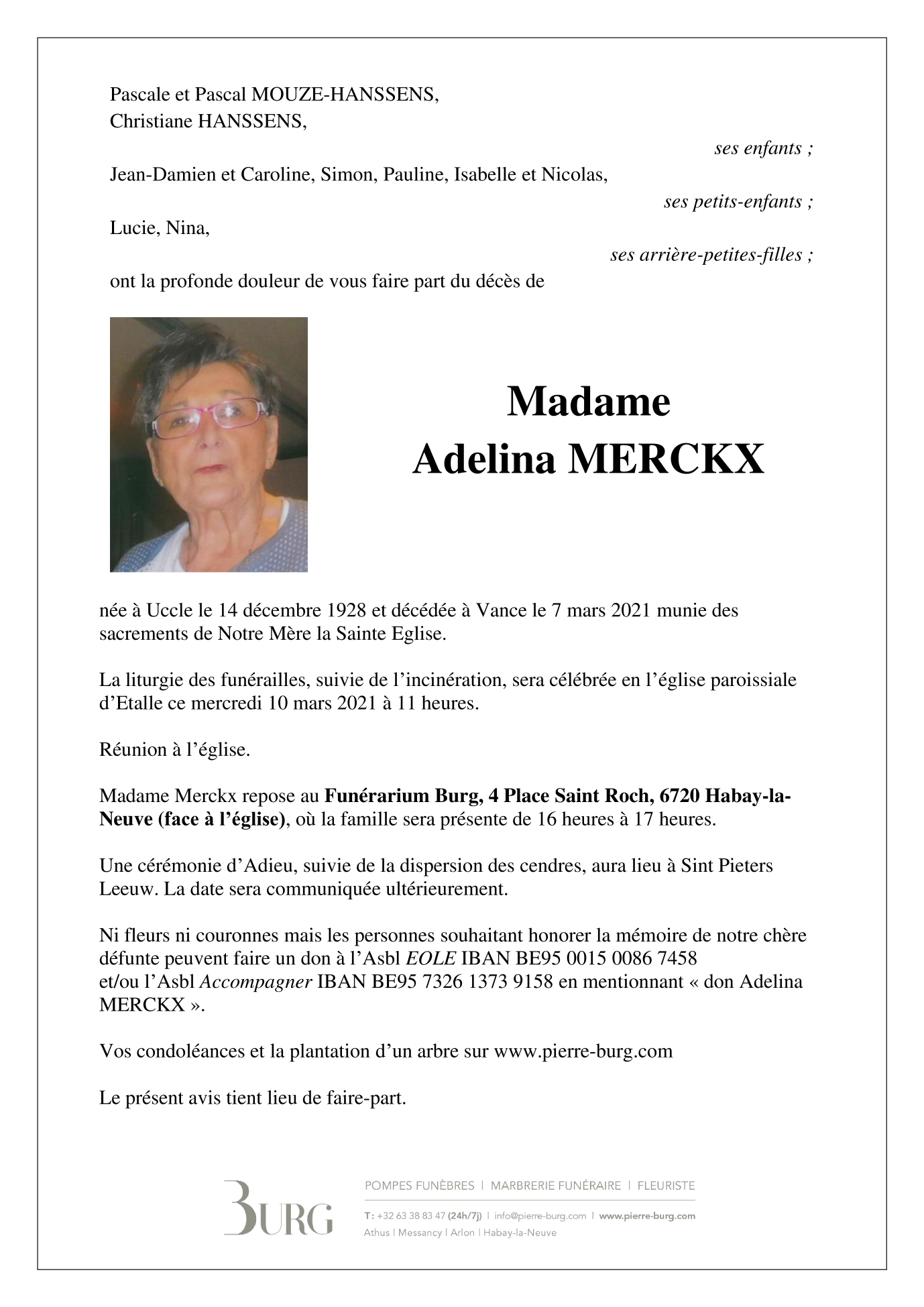 Décédée à Vance (6741) le dimanche 7 mars 2021 à l'âge de 92 ans