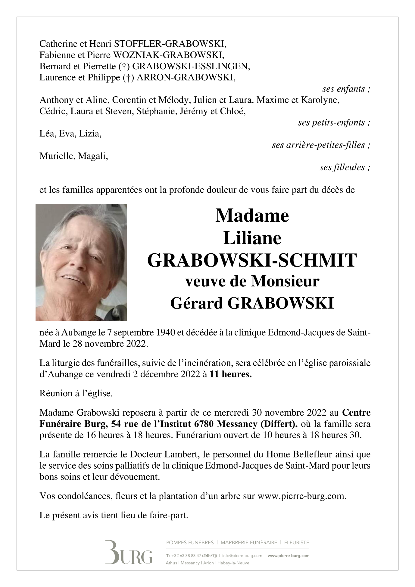 Décédée à Saint-Mard (6762) le lundi 28 novembre 2022 à l'âge de 82 ans