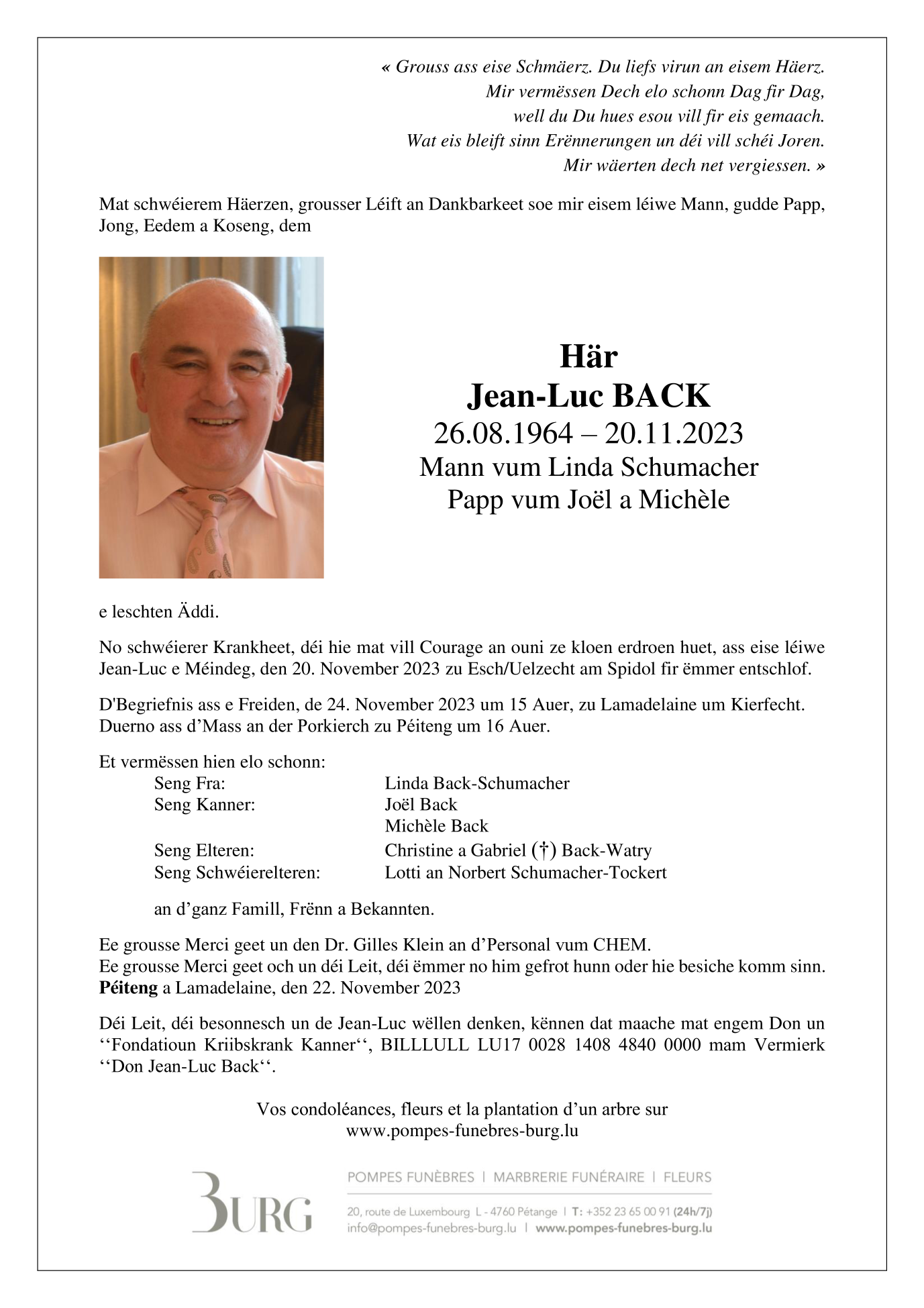 Décédé à Esch-Sur-Alzette/Mayrisch  (4240, Luxembourg) le lundi 20 novembre 2023 à l'âge de 59 ans