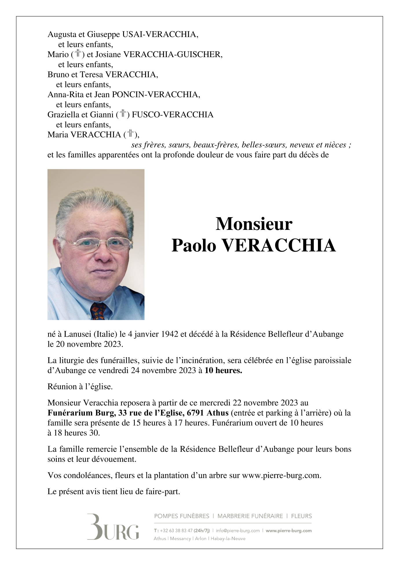 Décédé à Aubange (6790) le lundi 20 novembre 2023 à l'âge de 81 ans