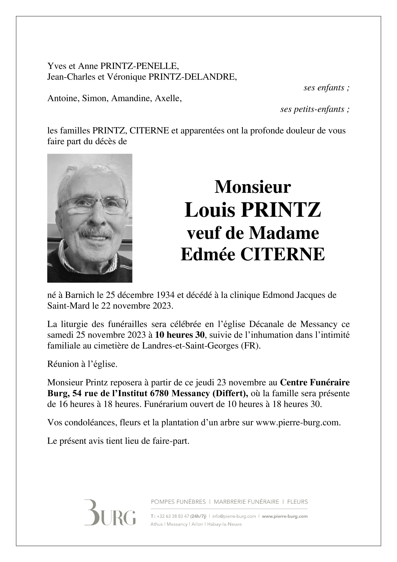 Décédé à Saint-Mard (6762) le mercredi 22 novembre 2023 à l'âge de 88 ans