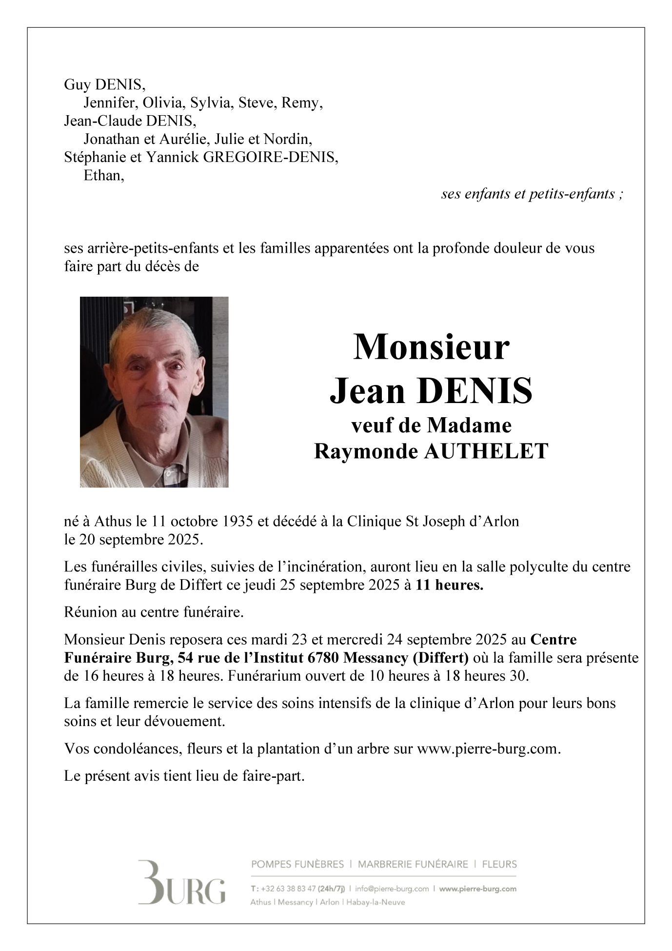 Décédé à Arlon (6700) le samedi 20 septembre 2025 à l'âge de 89 ans