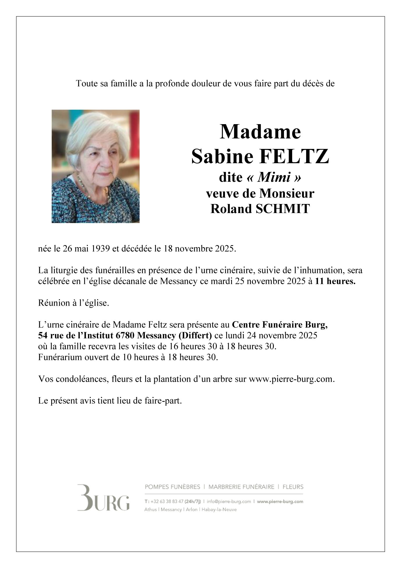 Décédée à Nivelles (1400) le mardi 18 novembre 2025 à l'âge de 86 ans