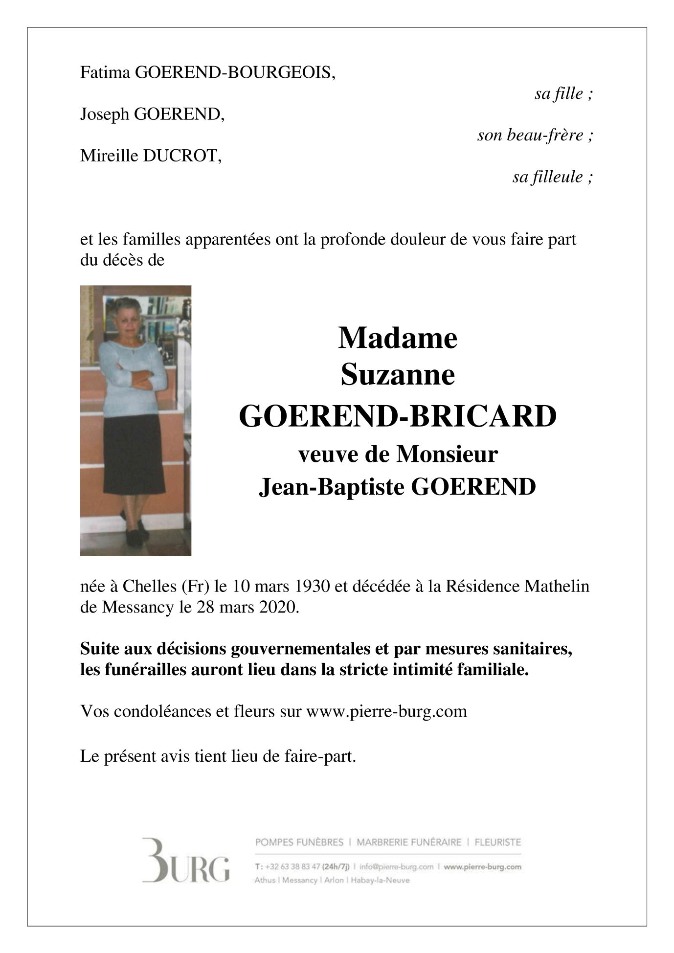 Veuve de Monsieur Jean-Baptiste GOEREND