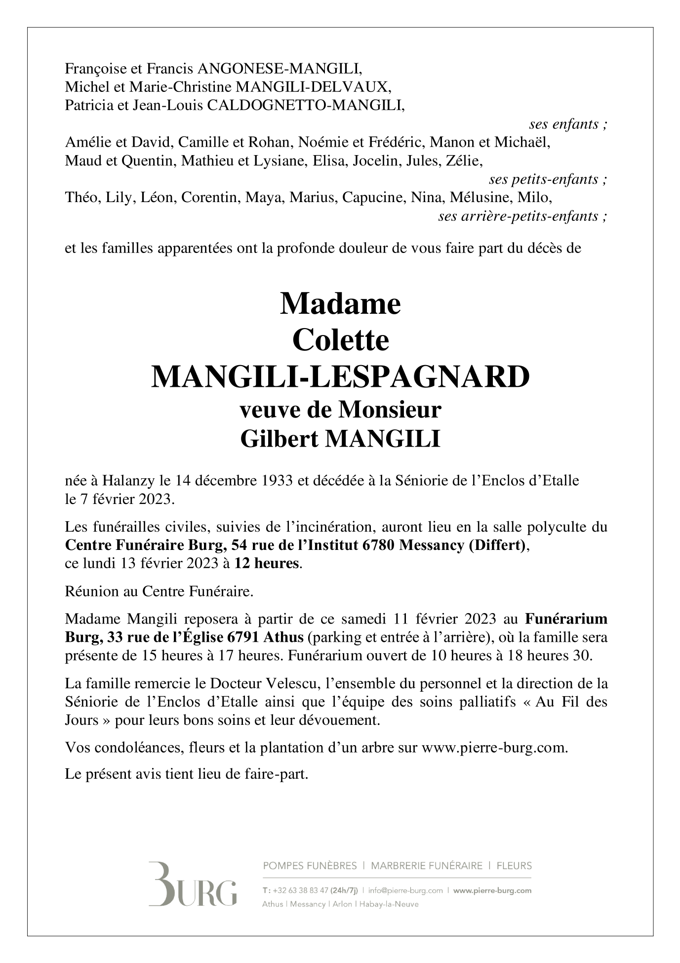Madame Colette MANGILI-LESPAGNARD