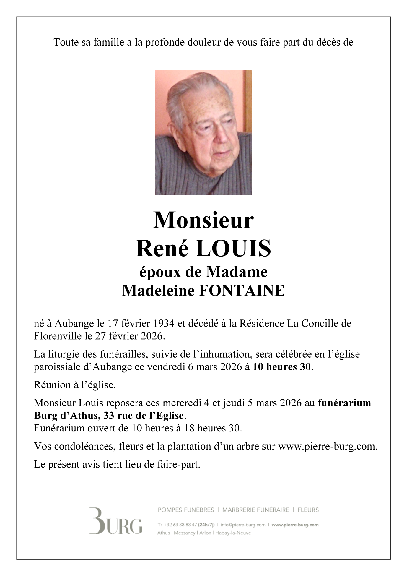 Décédé à Florenville (6820) le vendredi 27 février 2026 à l'âge de 92 ans