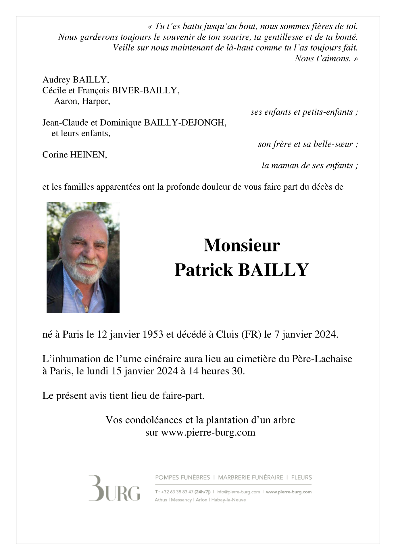Décédé à Cluis (36340, France) le dimanche 7 janvier 2024 à l'âge de 70 ans