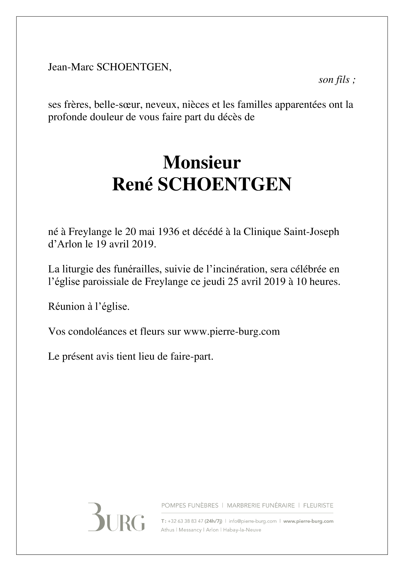 Décédé à Arlon (6700) le vendredi 19 avril 2019 à l'âge de 82 ans