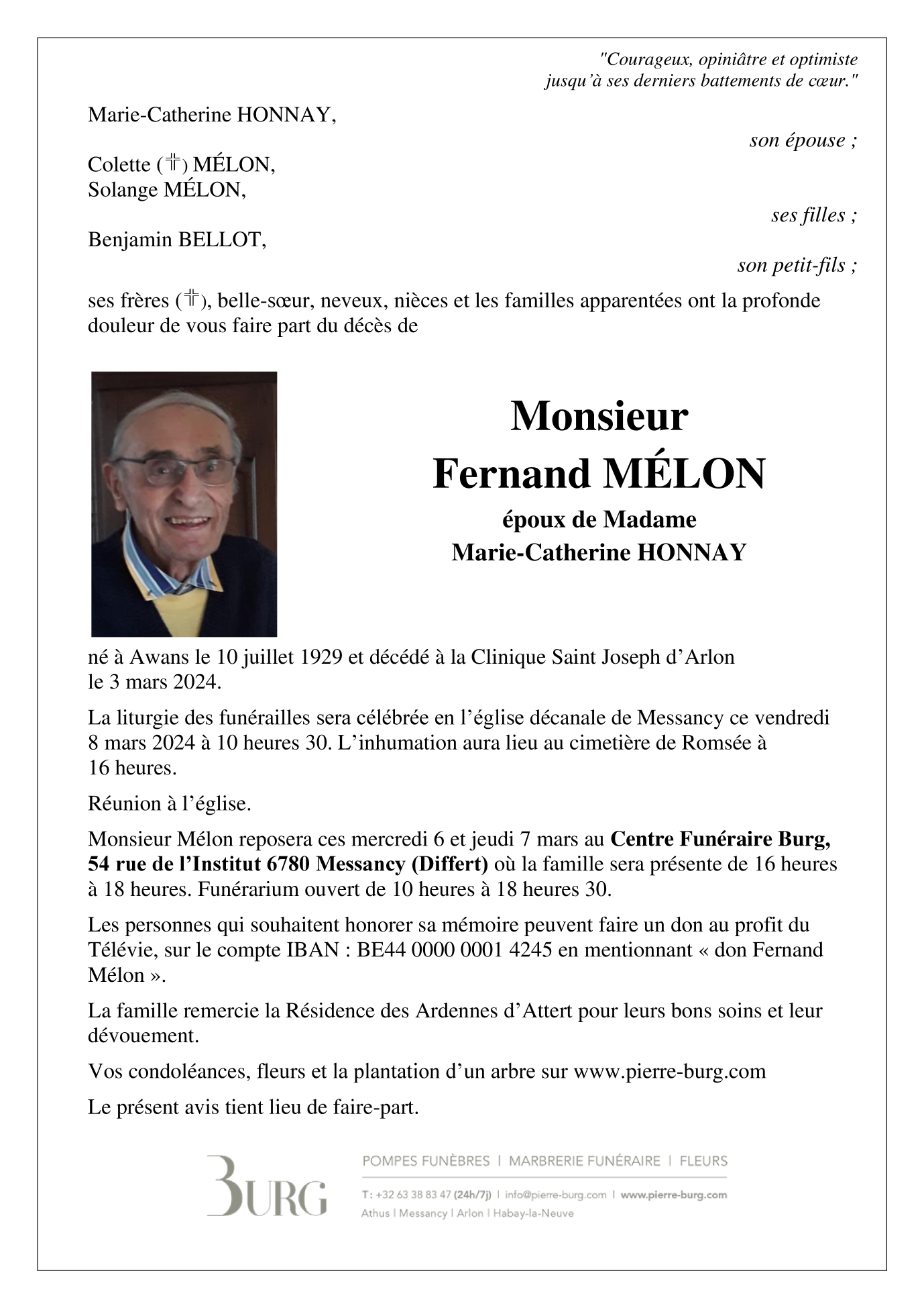 Décédé à Arlon (6700) le dimanche 3 mars 2024 à l'âge de 94 ans