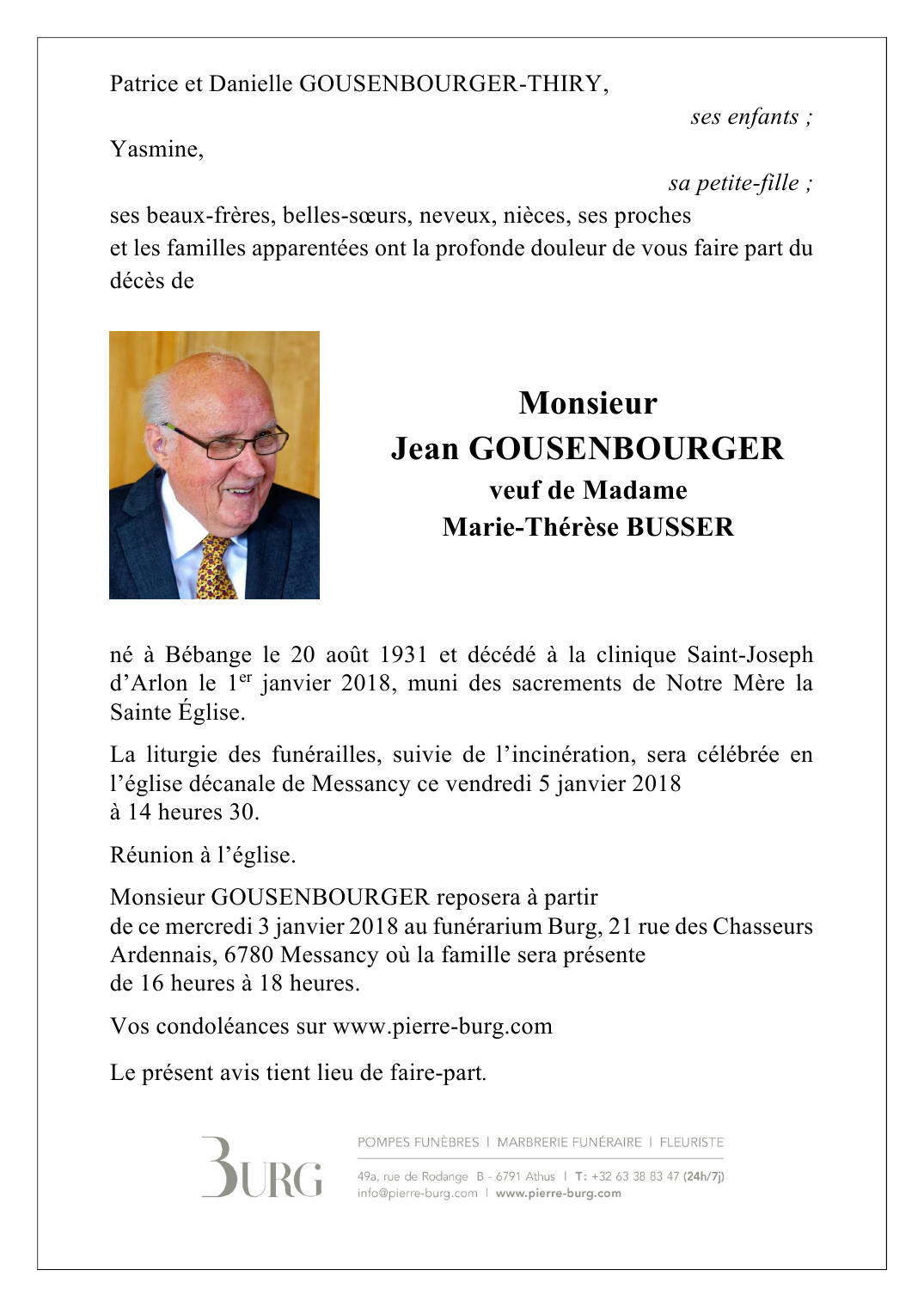 Monsieur Jean GOUSENBOURGER