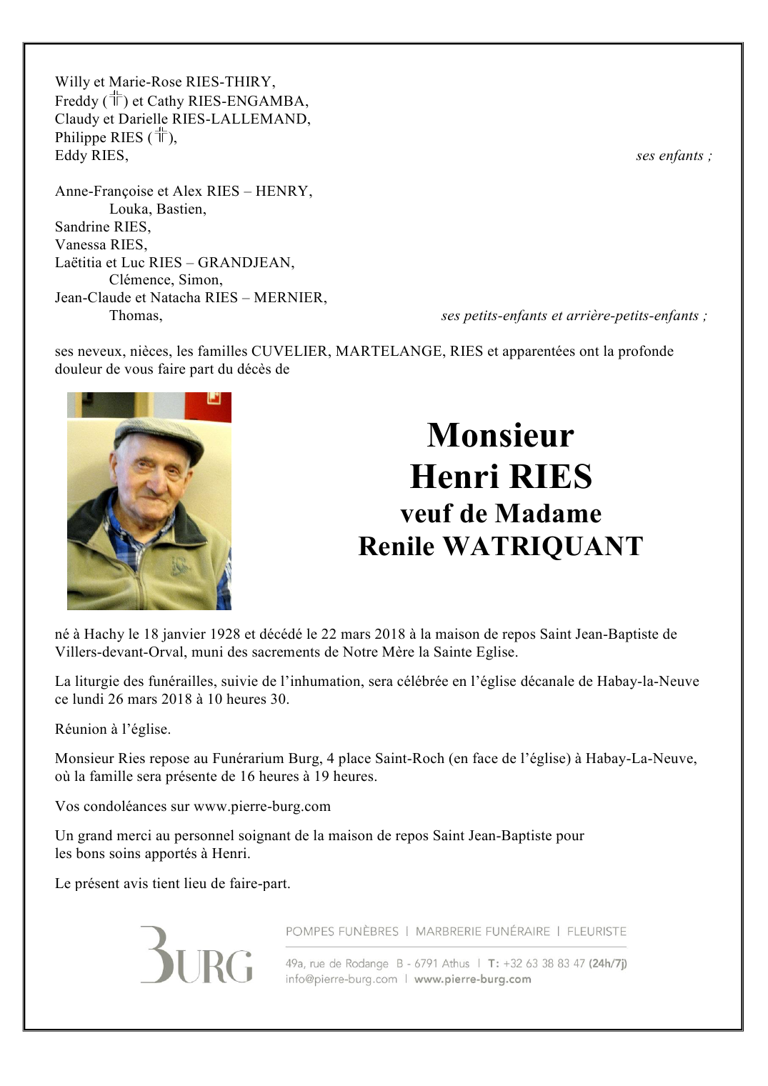 Veuf de Madame Renile WATRIQUANT