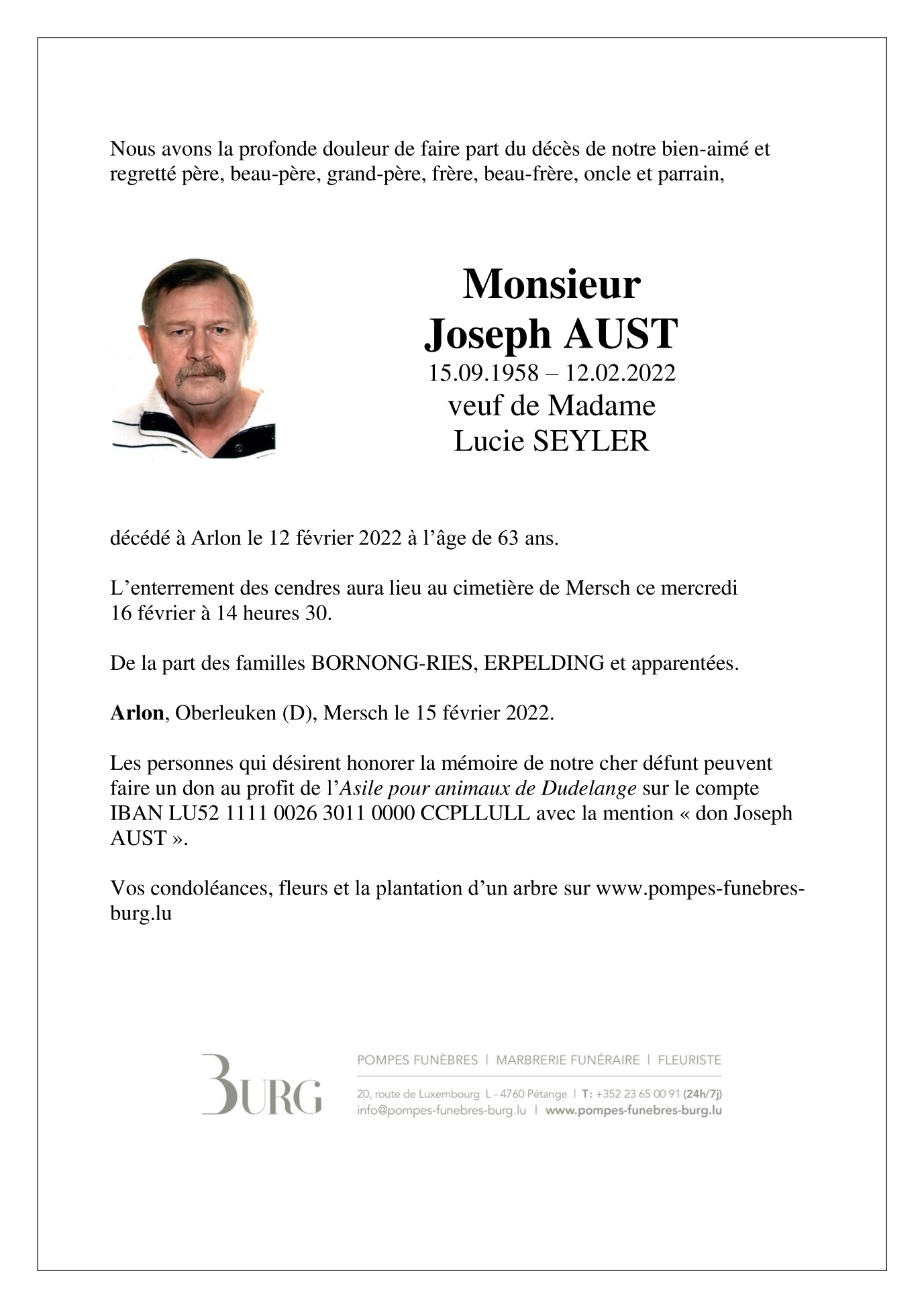 Décédé à Arlon (6700) le samedi 12 février 2022 à l'âge de 63 ans