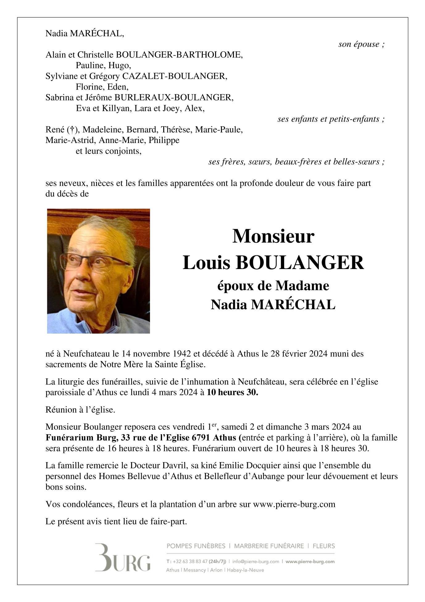 Décédé à Athus (6791) le mercredi 28 février 2024 à l'âge de 81 ans