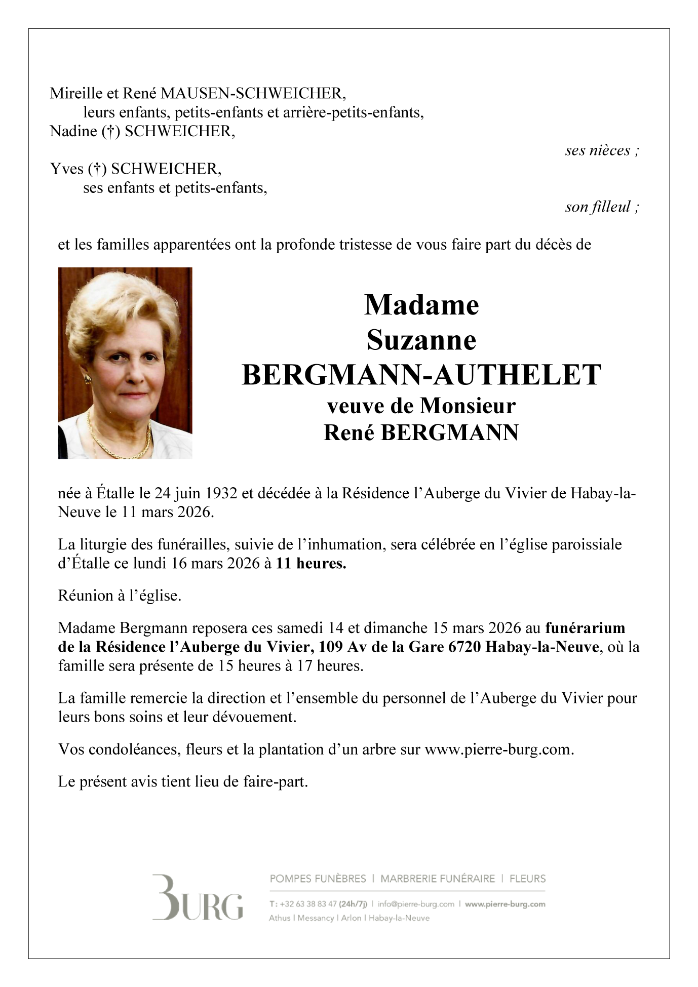 Veuve de Monsieur René BERGMANN