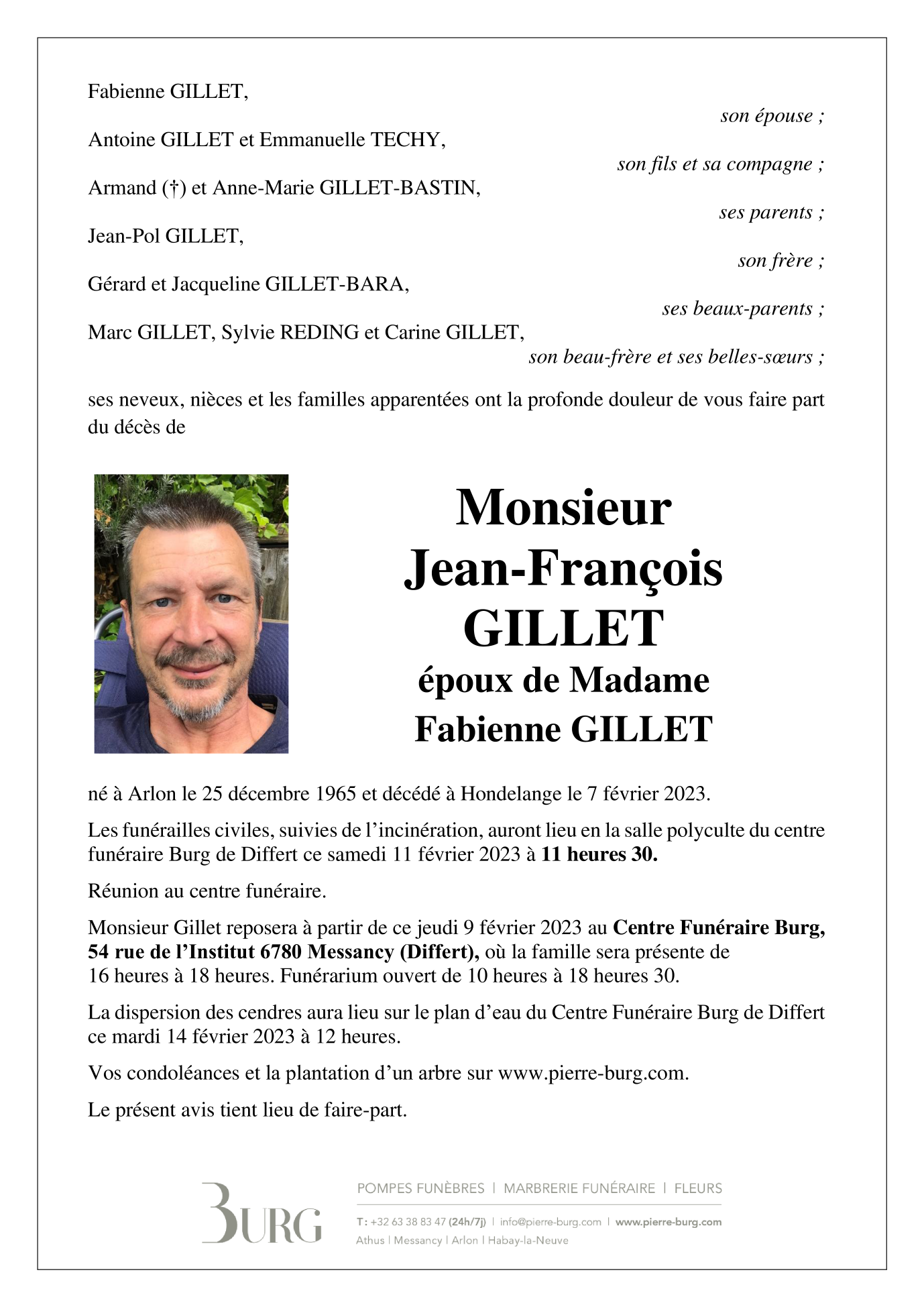 Décédé à Hondelange (6780) le mardi 7 février 2023 à l'âge de 57 ans