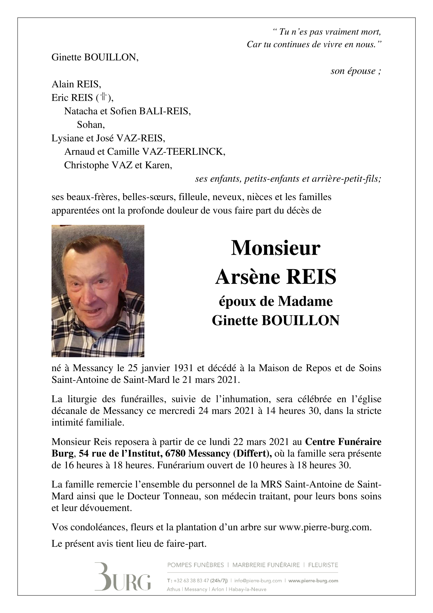 Décédé à Saint-Mard (6762) le dimanche 21 mars 2021 à l'âge de 90 ans