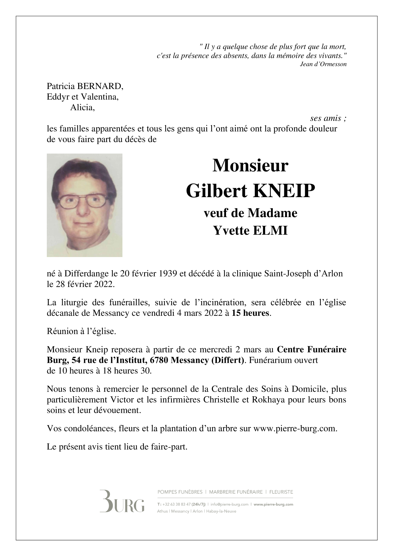 Né à Differdange (Luxembourg) le lundi 20 février 1939