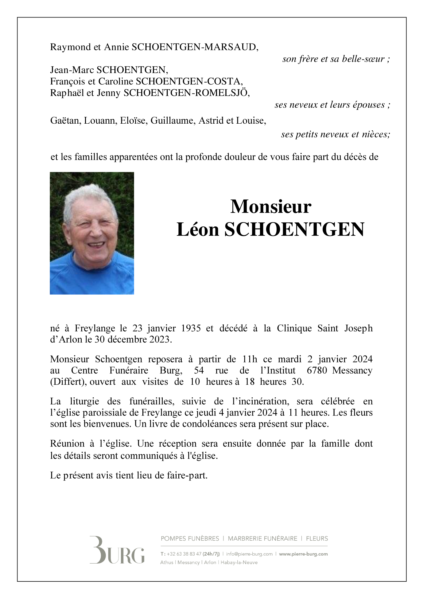 Décédé à Arlon (6700) le samedi 30 décembre 2023 à l'âge de 88 ans