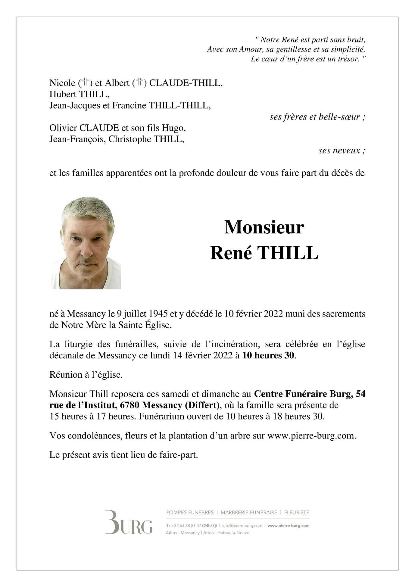 Décédé à Messancy (6780) le jeudi 10 février 2022 à l'âge de 76 ans