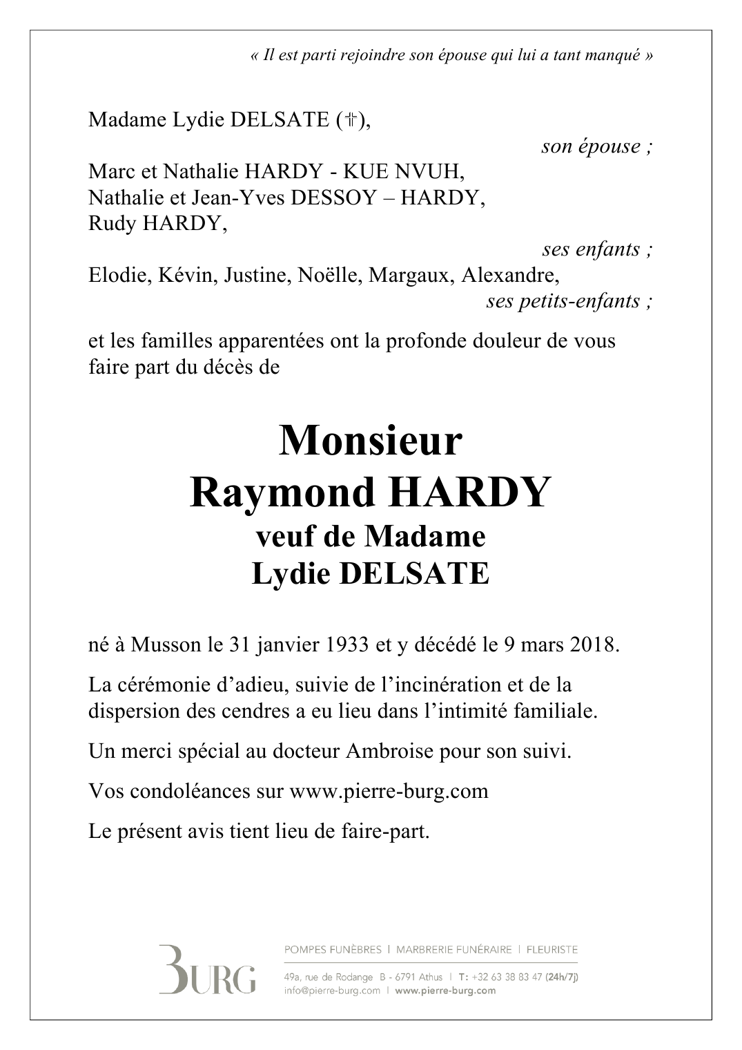 Décédé à Musson (6750) le vendredi 9 mars 2018 à l'âge de 85 ans