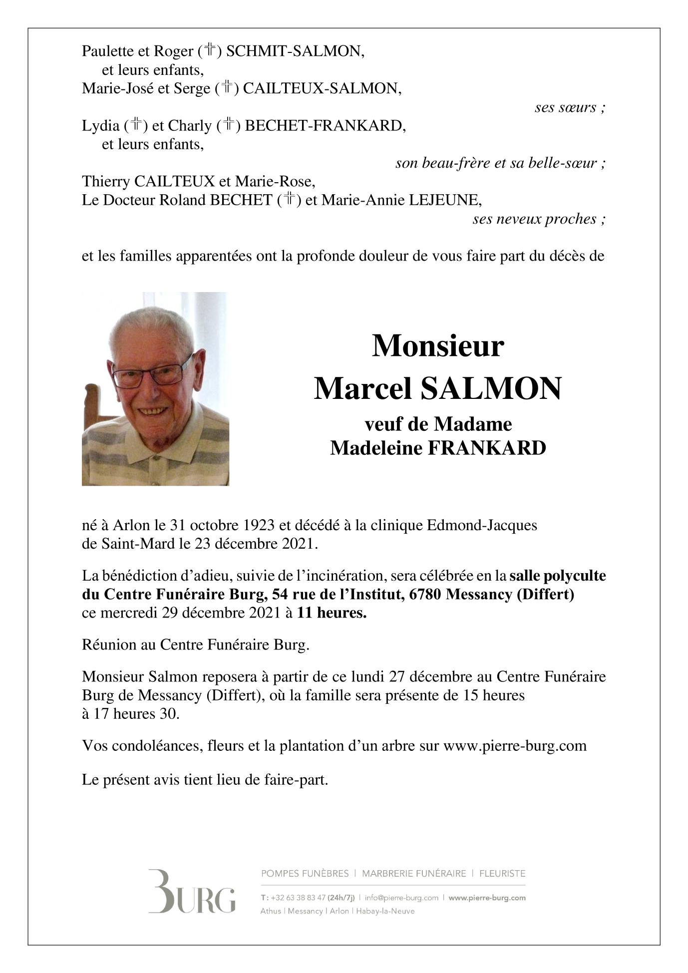 Décédé à Saint-Mard (6762) le jeudi 23 décembre 2021 à l'âge de 98 ans