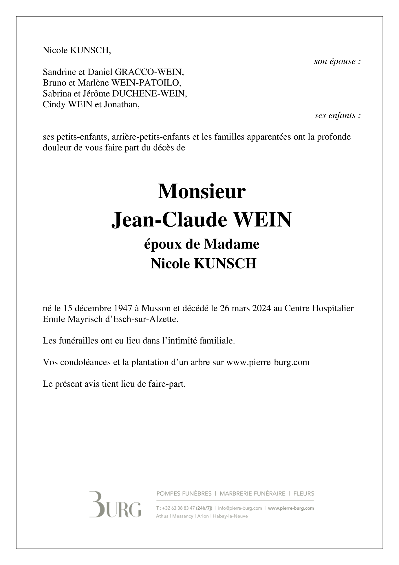 Epoux de Madame Nicole KUNSCH