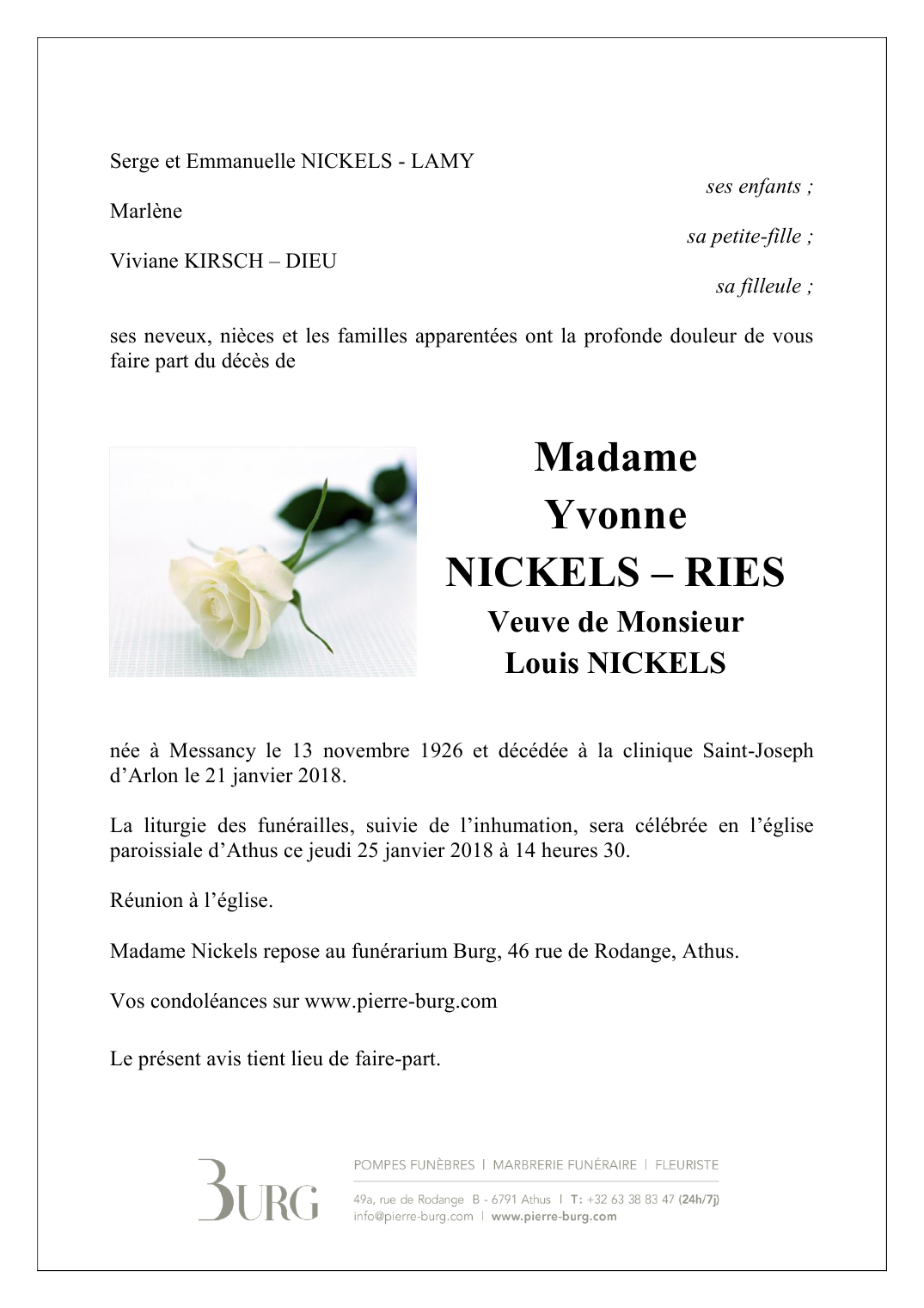 Madame Yvonne NICKELS née RIES