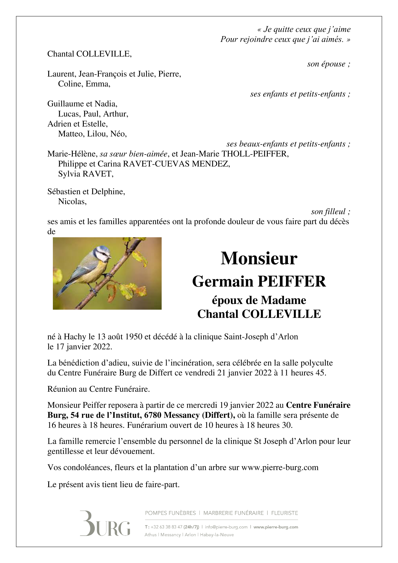 Décédé à Arlon (6700) le lundi 17 janvier 2022 à l'âge de 71 ans