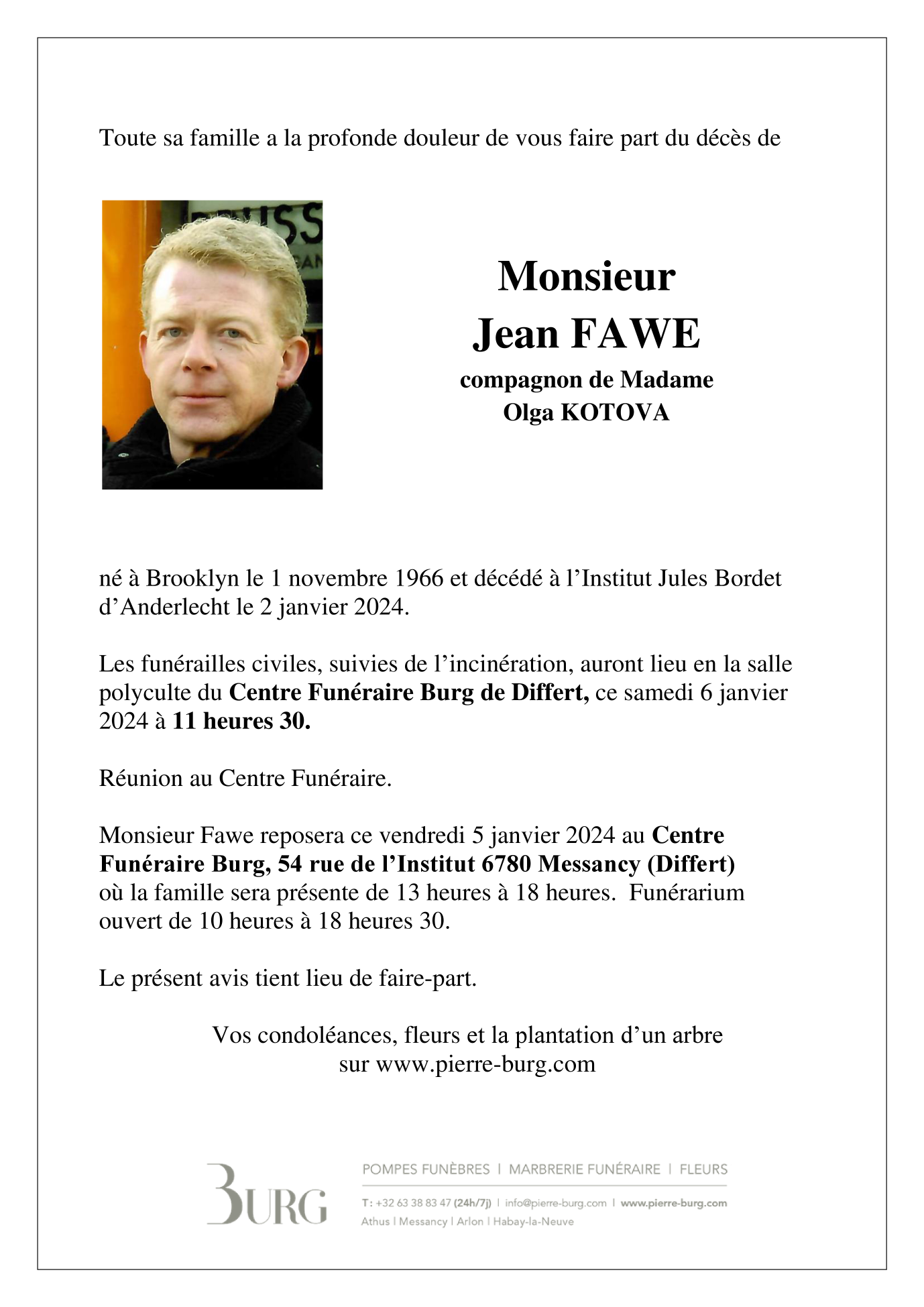 Décédé à Anderlecht (1070) le mardi 2 janvier 2024 à l'âge de 57 ans