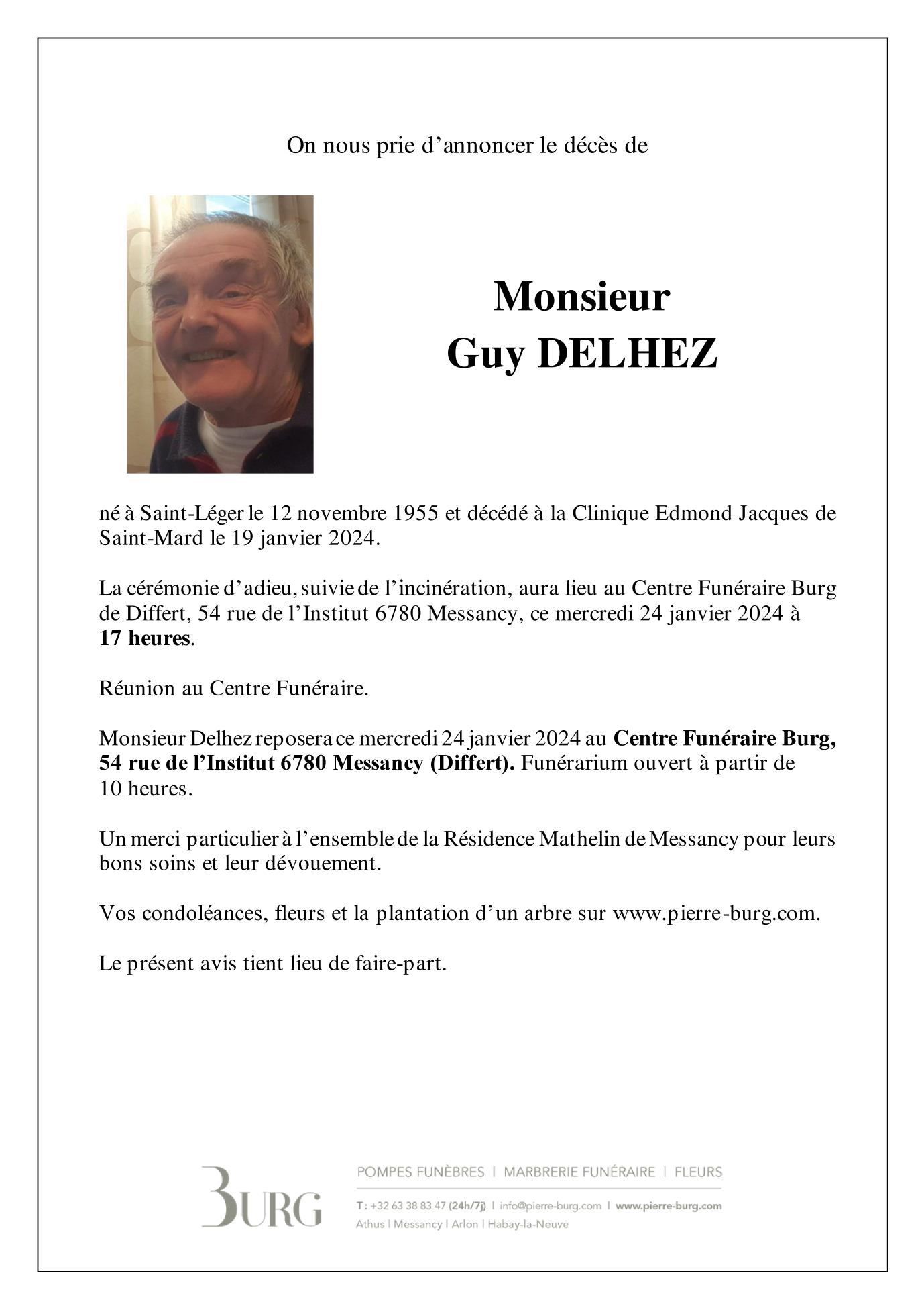 Décédé à Saint-Mard (6762) le vendredi 19 janvier 2024 à l'âge de 68 ans