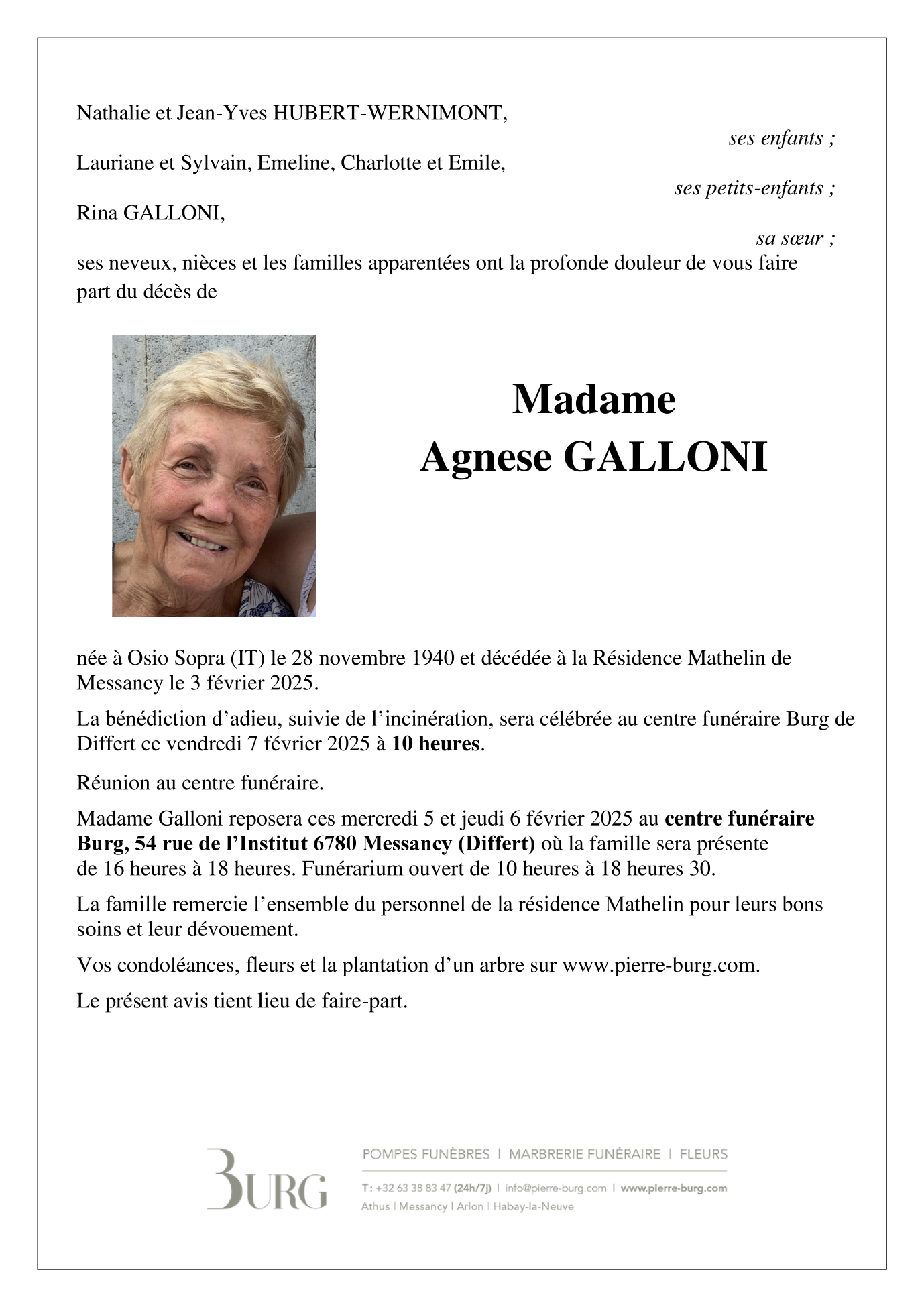Décédée à Messancy (6780) le lundi 3 février 2025 à l'âge de 84 ans