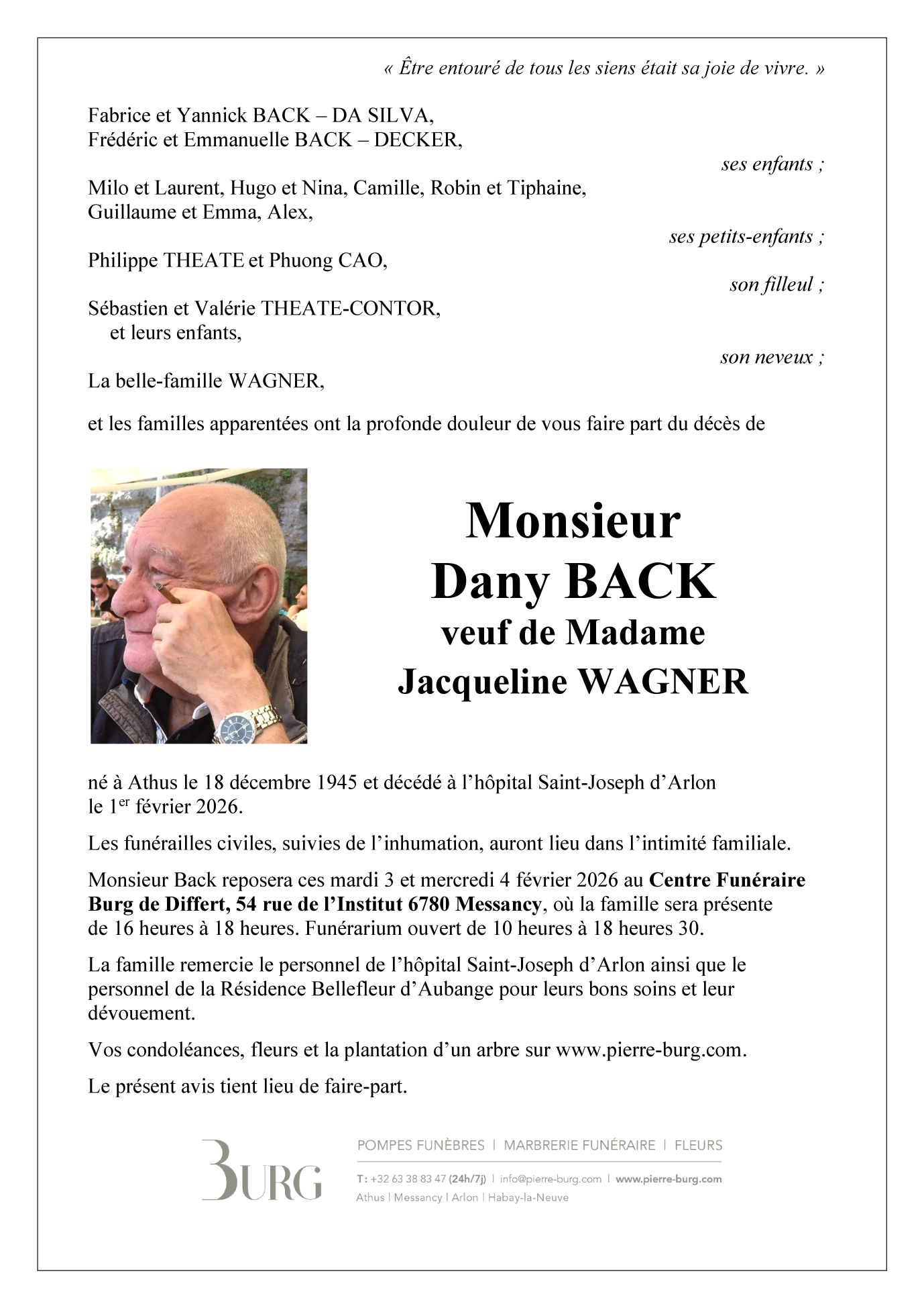 Décédé à Arlon (6700) le dimanche 1 février 2026 à l'âge de 80 ans