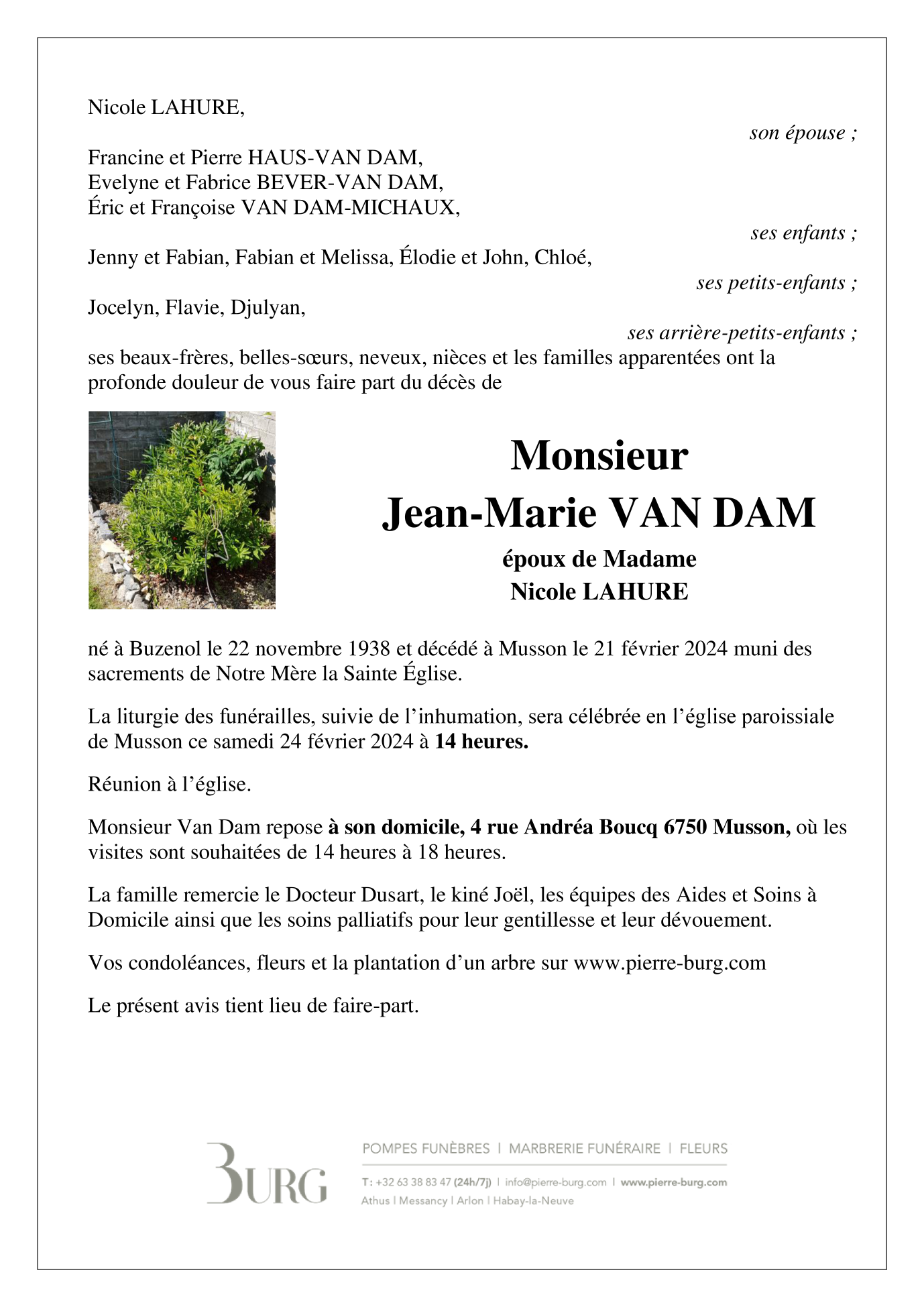Décédé à Musson (6750) le mercredi 21 février 2024 à l'âge de 85 ans