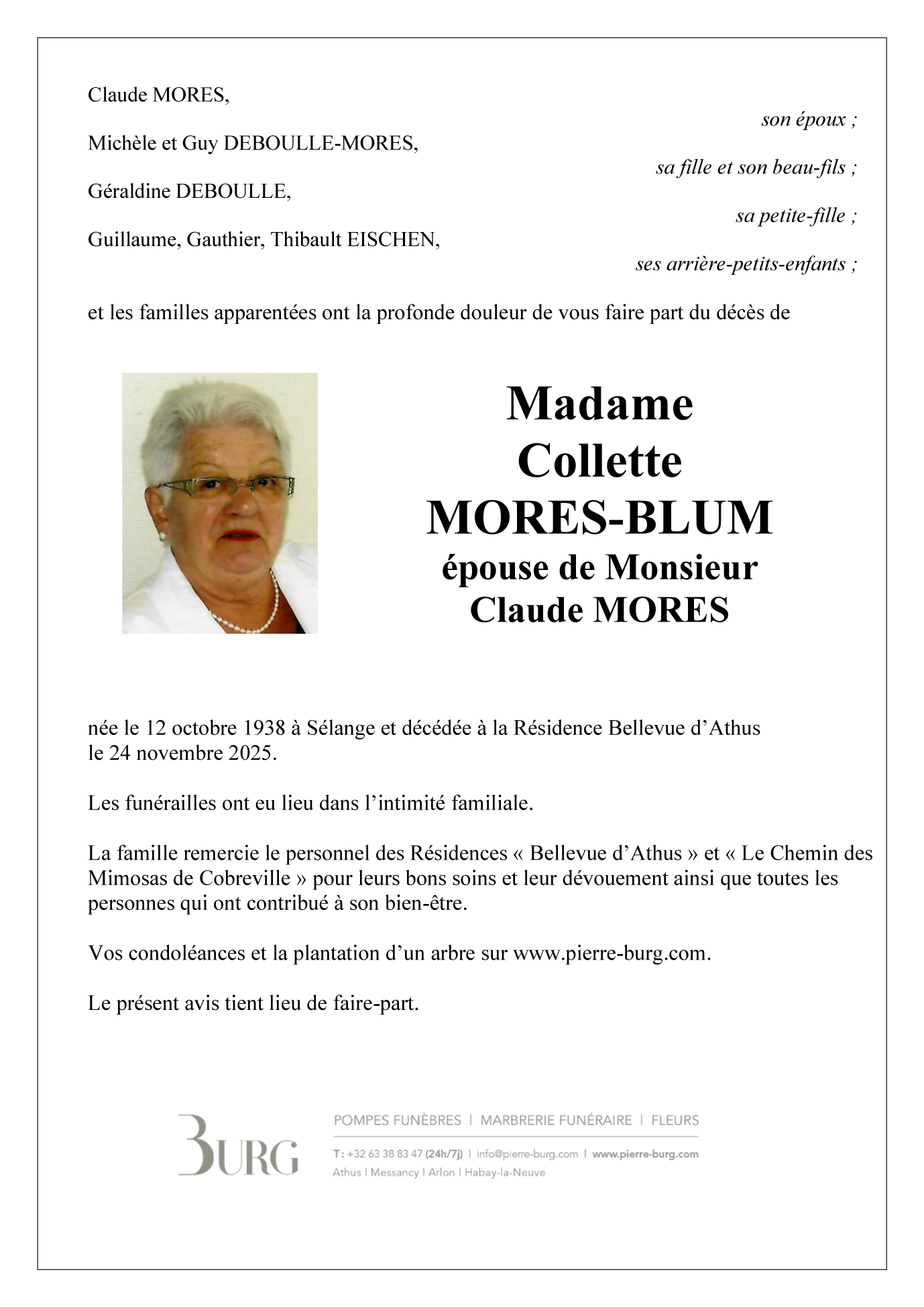Epouse de monsieur Claude MORES