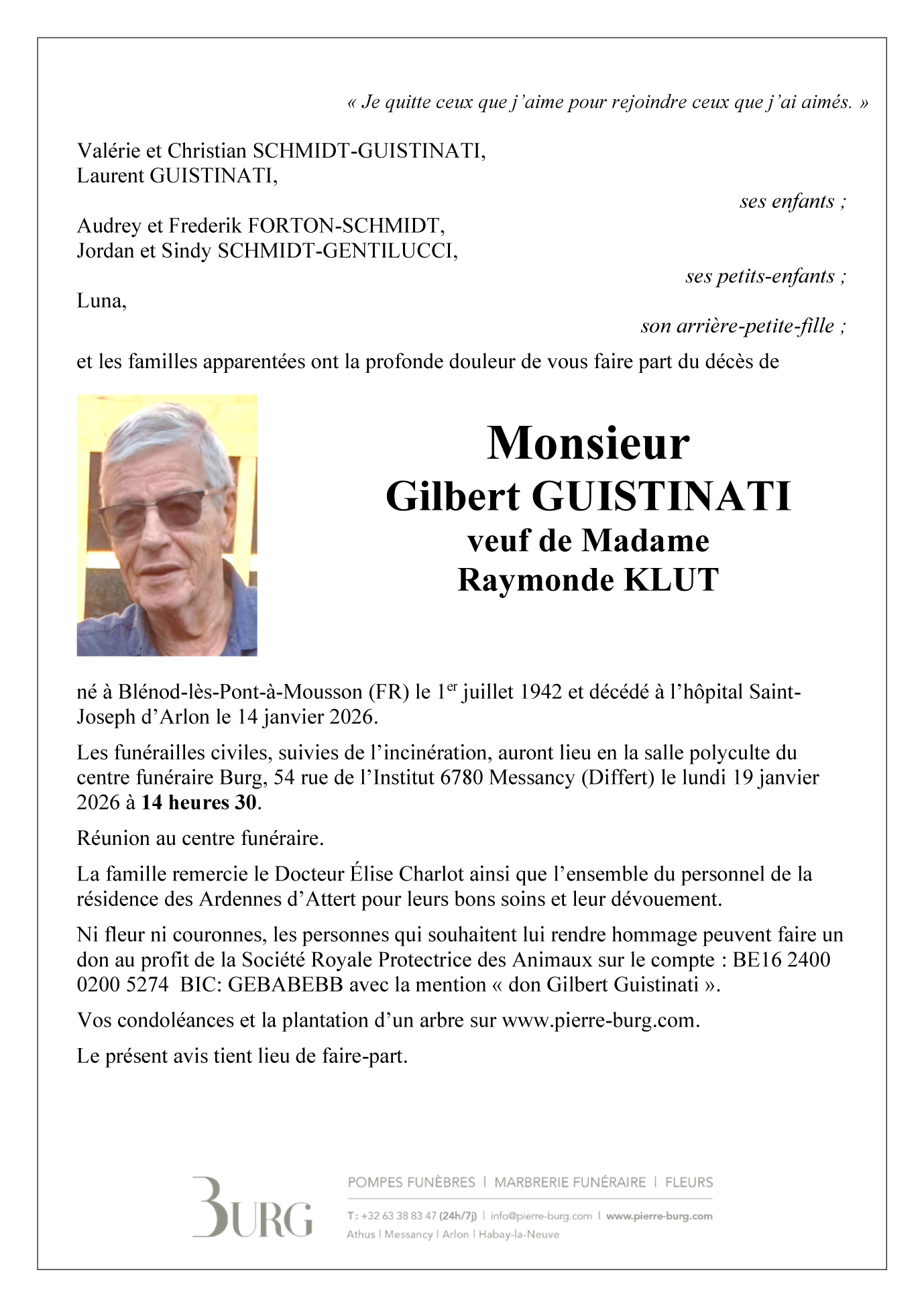 Décédé à Arlon (6700) le mercredi 14 janvier 2026 à l'âge de 83 ans